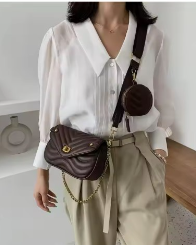 This crossbody bag with a pouch has soft quilt-like texture that adds to the style of the bag. It also has a detachable pouch to enhance its beauty. Its adjustable strap makes it convenient to wear when hands are tight.
