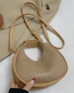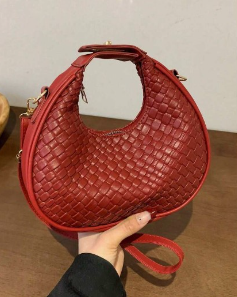 Be the first to review “Crescent Bag Casual Elegance in Woven Texture.”