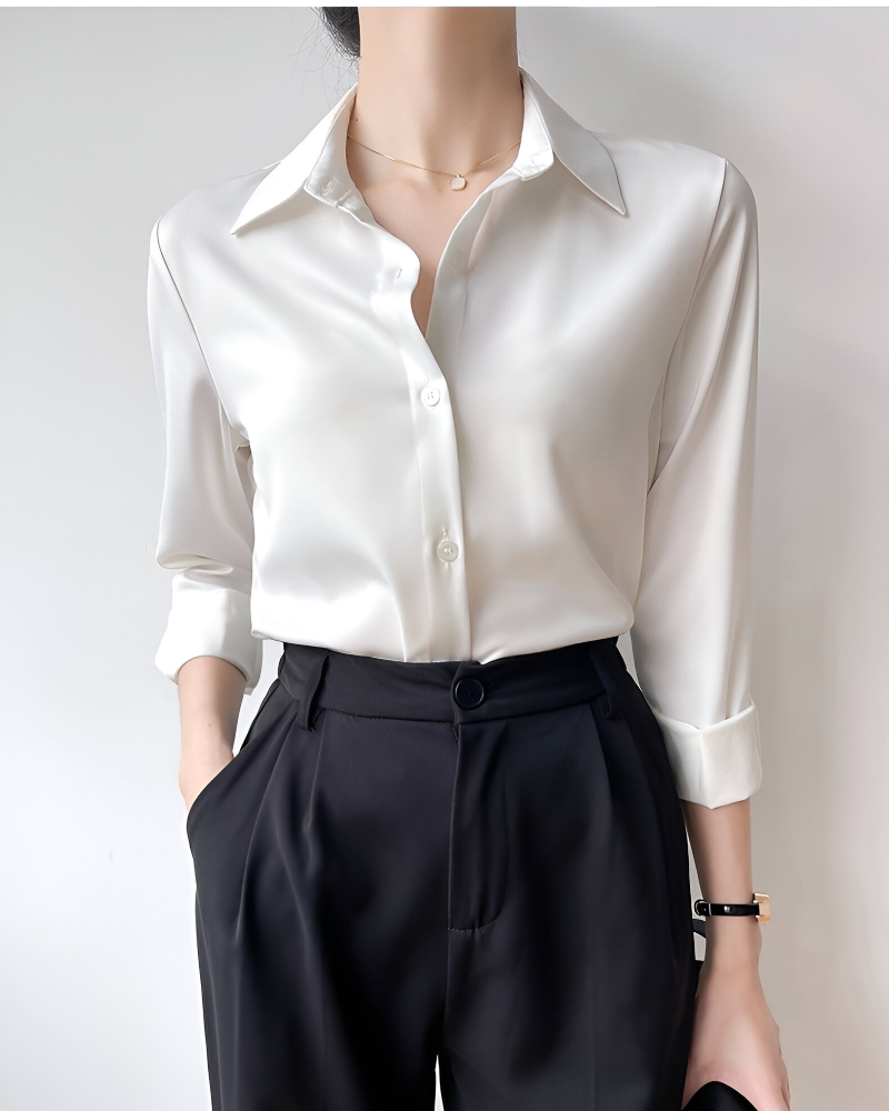 Effortless Elegance: Satin Blouse with Tailored Pencil Skirt
