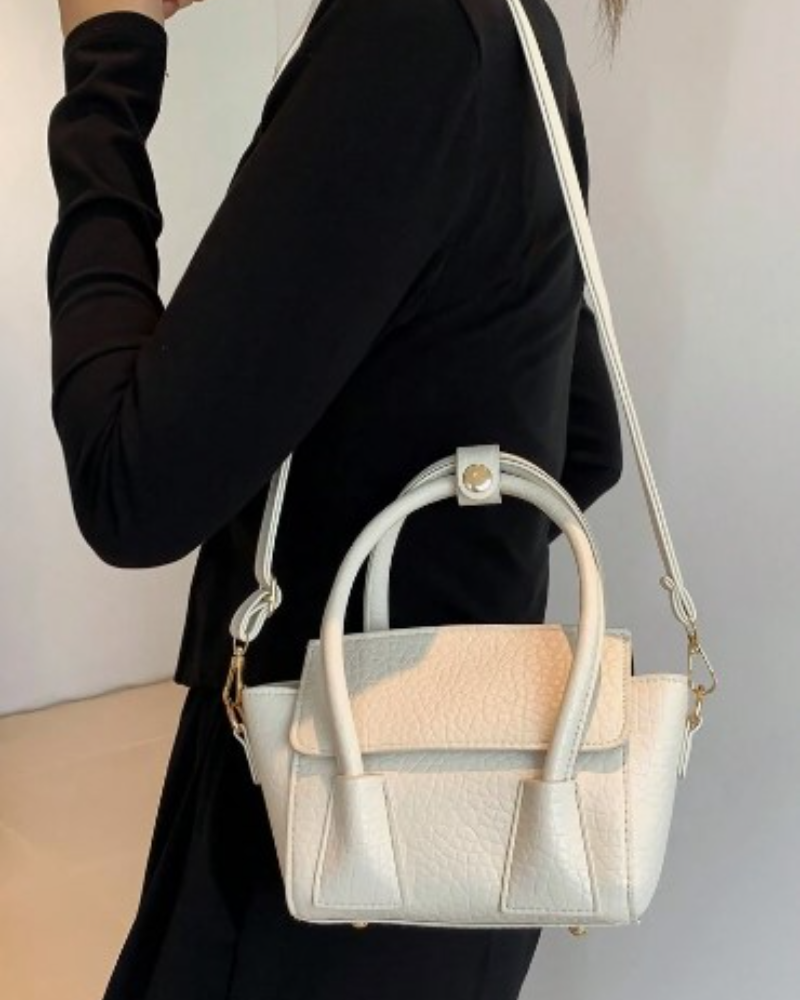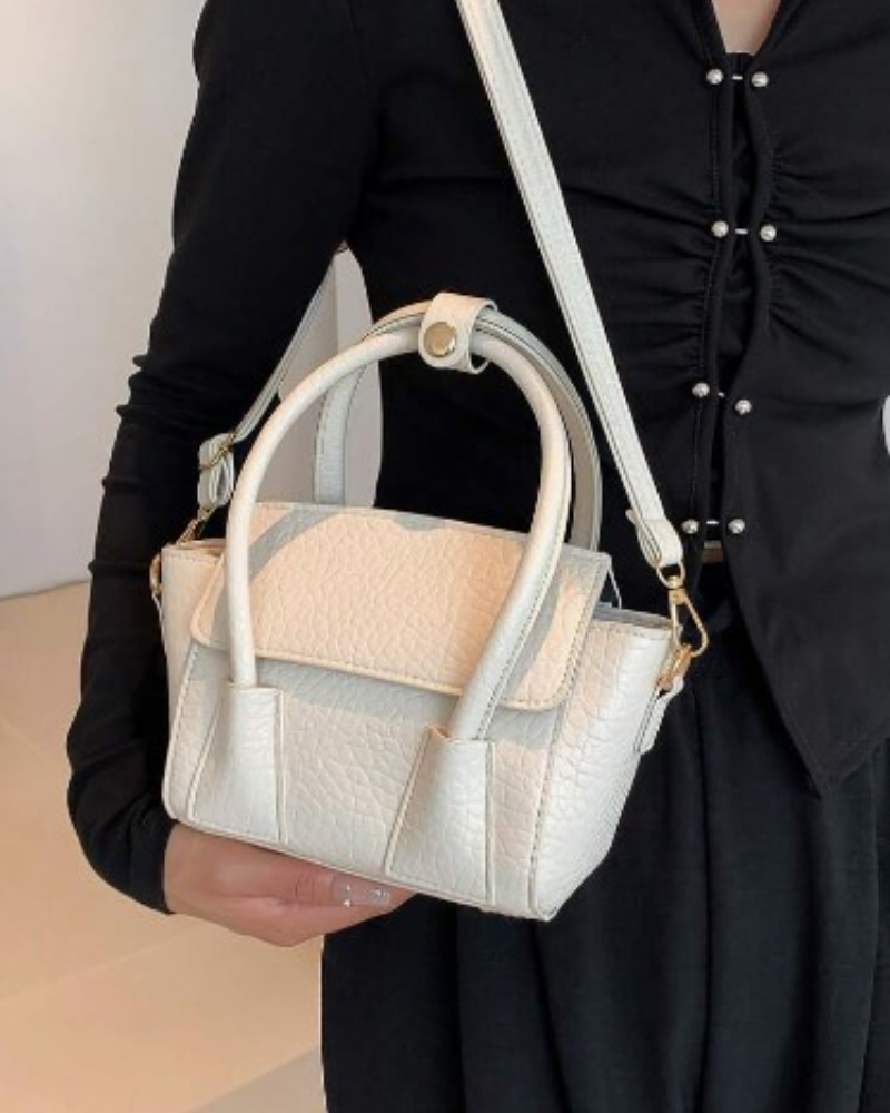 These chic mini tote combine modern style with timeless sophistication. Featuring a structured design, sturdy handles, a detachable strap, and gold-tone hardware, they are perfect for both casual and formal occasions. Compact yet spacious, they’re ideal for carrying essentials with elegance.