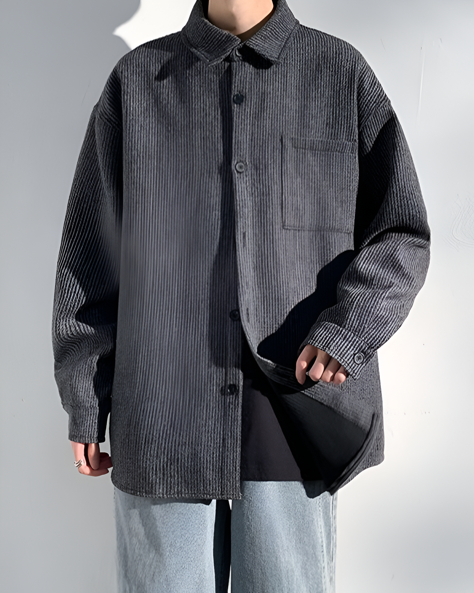 Men’s Retro Corduroy Jacket Solid Color, Button-Up, Turn-Down Collar