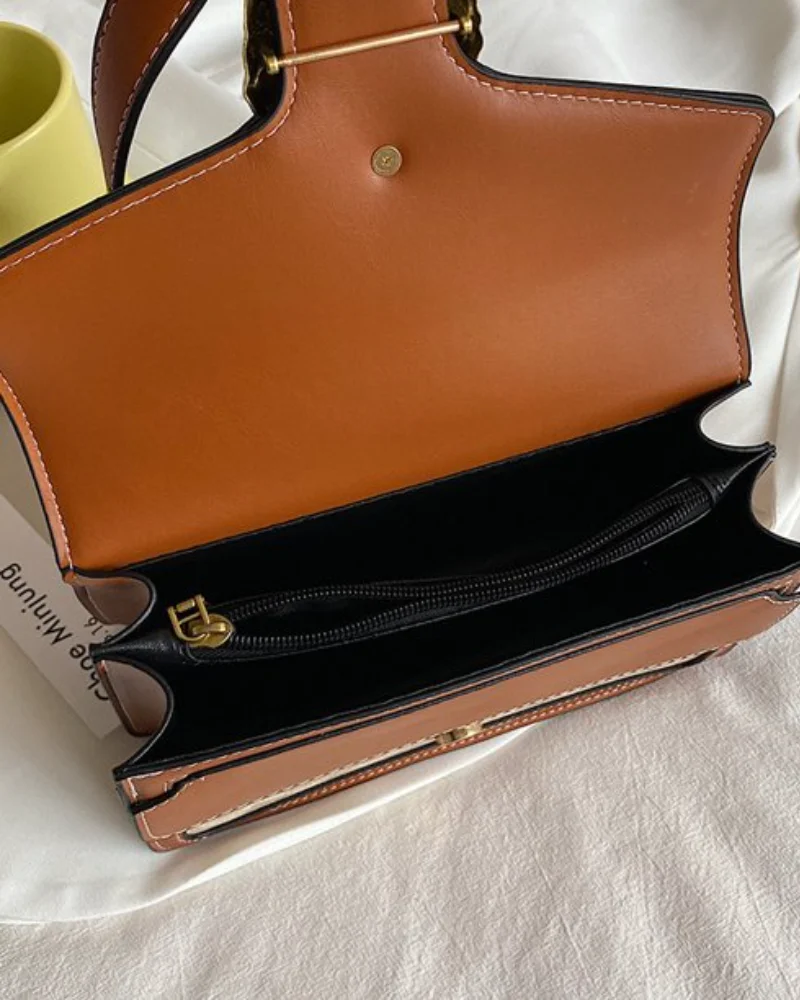 Elegant Leather Handbag with Golden Accent.