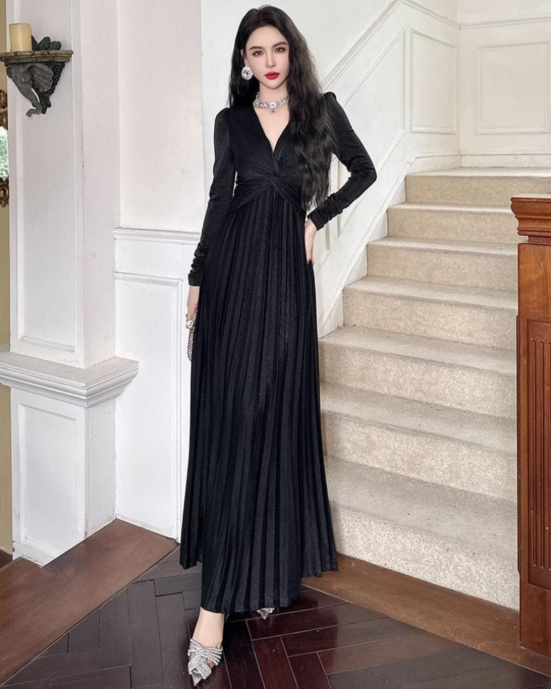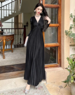 Be the first to review “Timeless Black Pleated Maxi Dress with Front Twist”