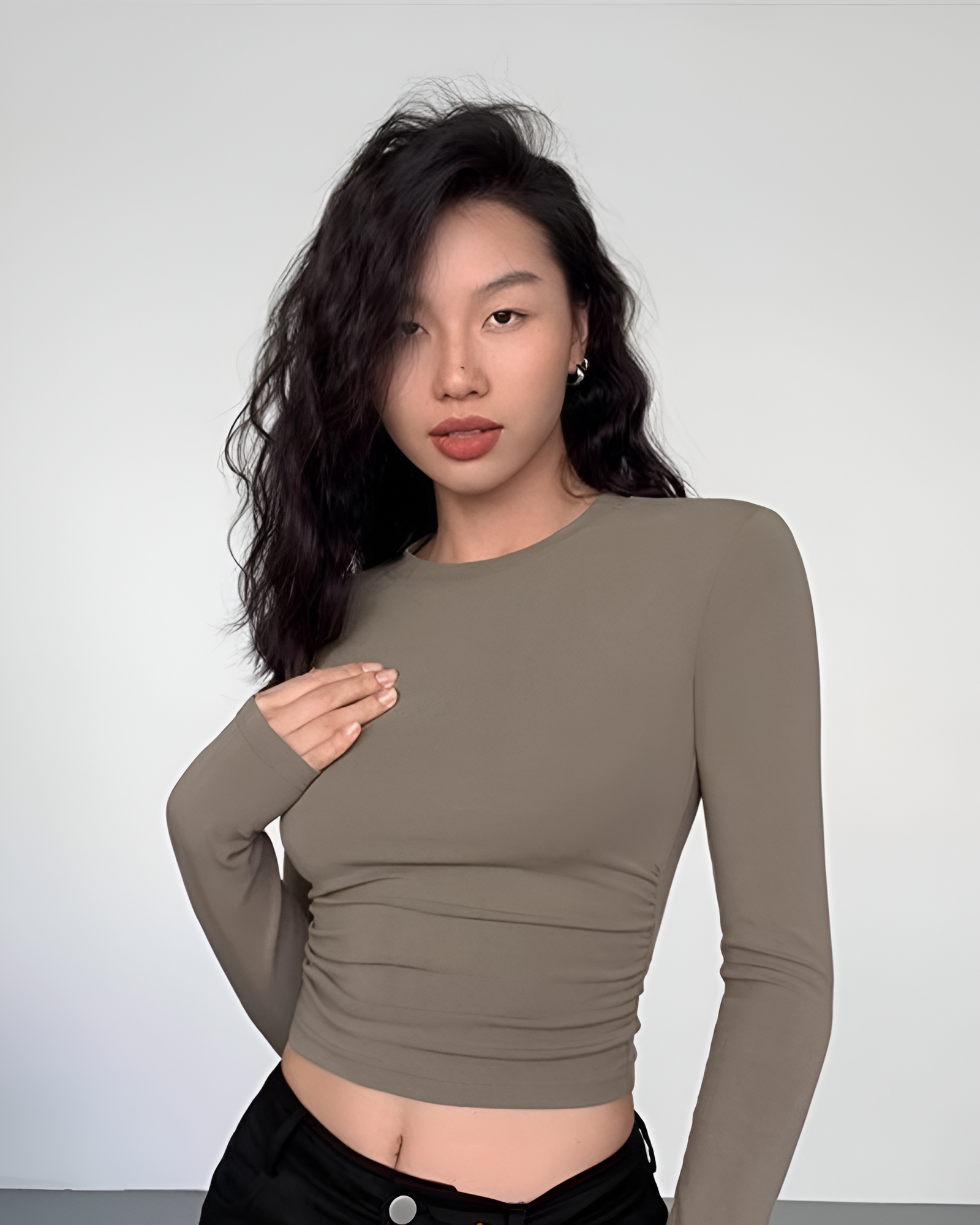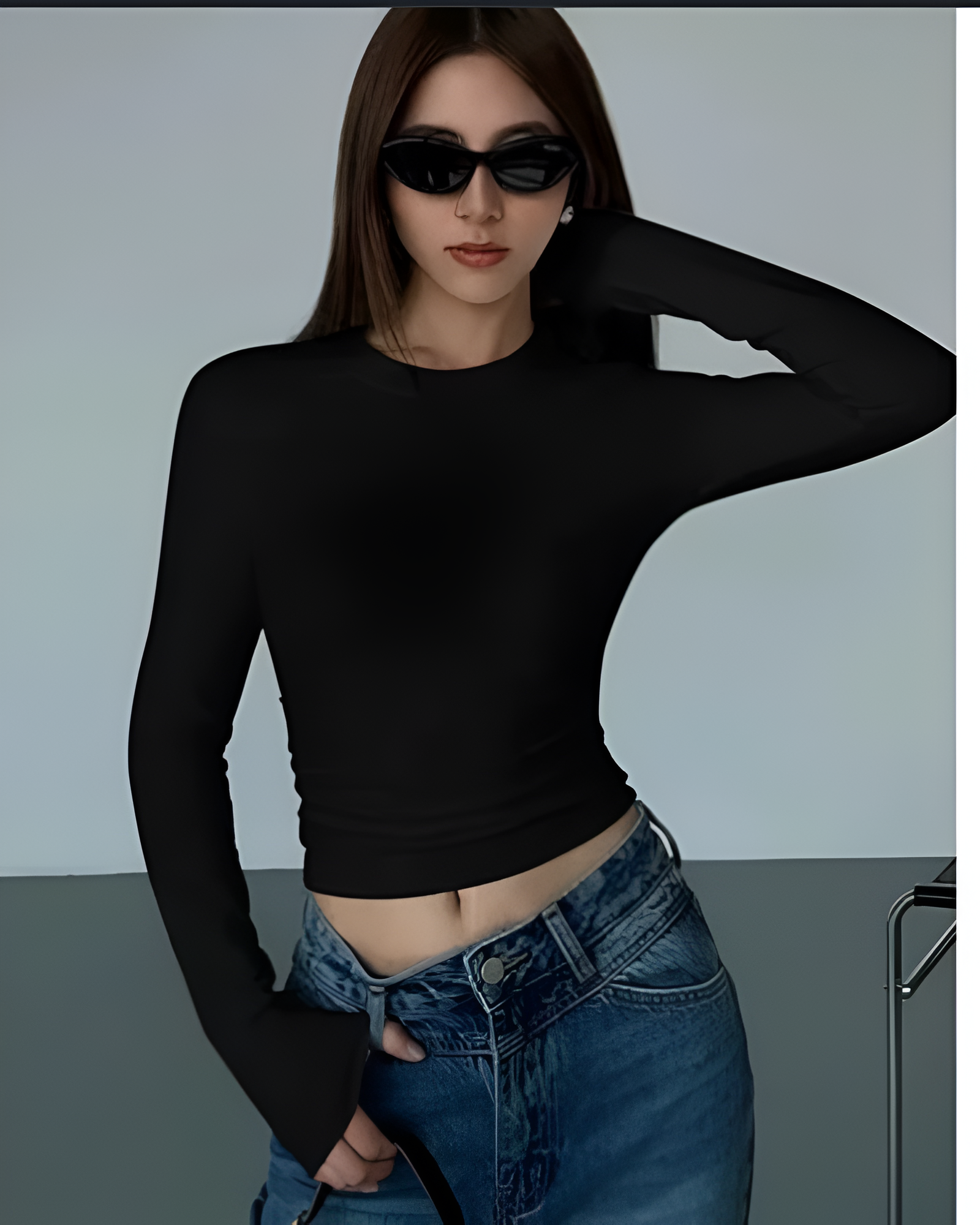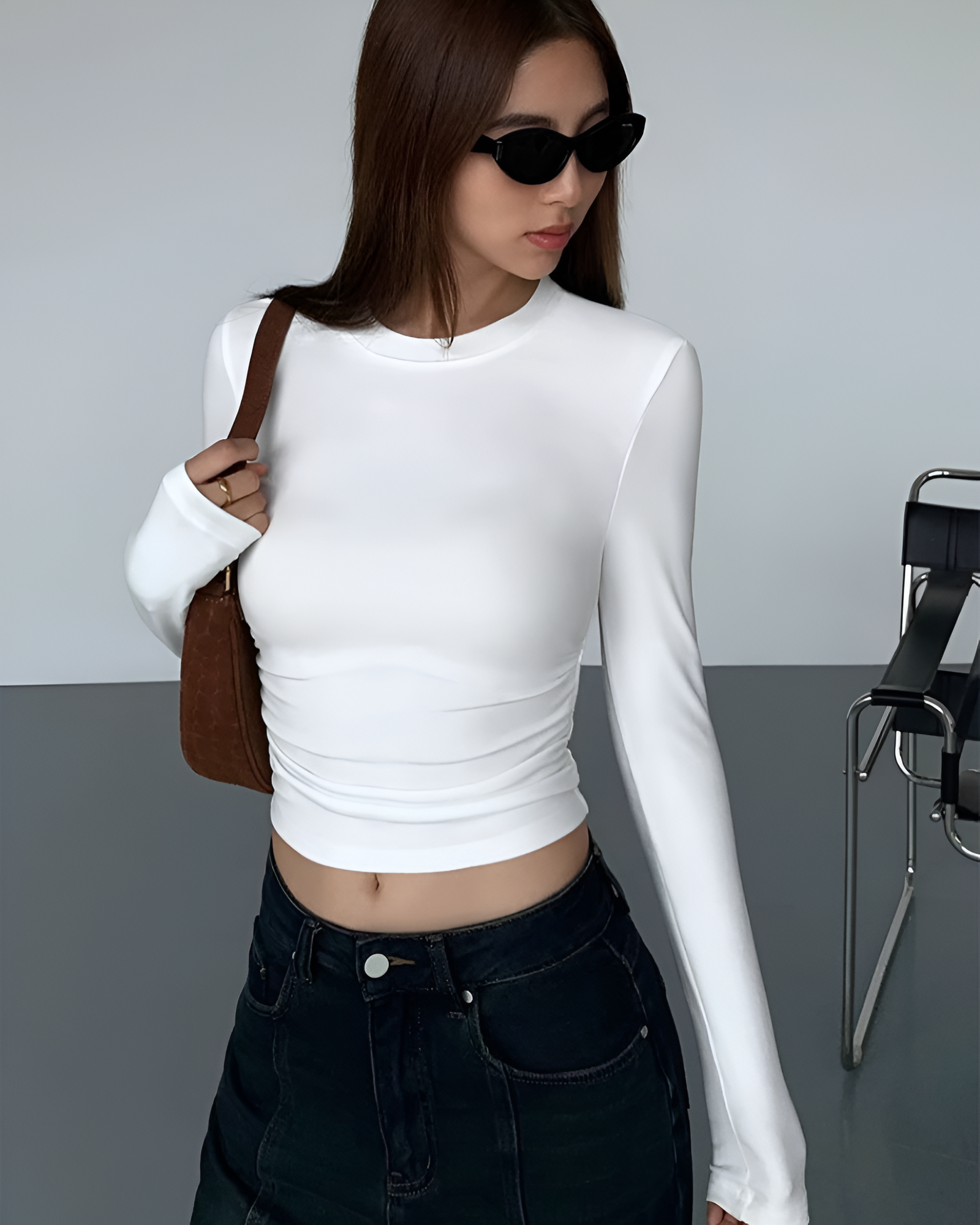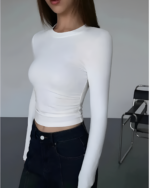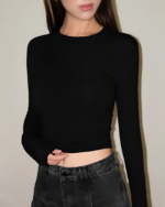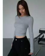Women’s Long Sleeve Crop Shirt – Fitted and Minimalist Casual Style
