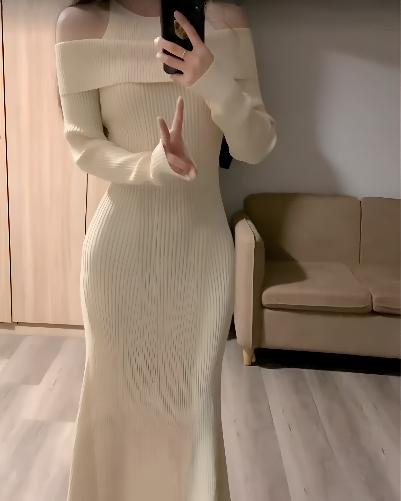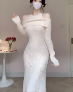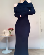 Be the first to review “Women’s Off-Shoulder Ribbed Knit Maxi Dress – Elegant & Fitted Look”