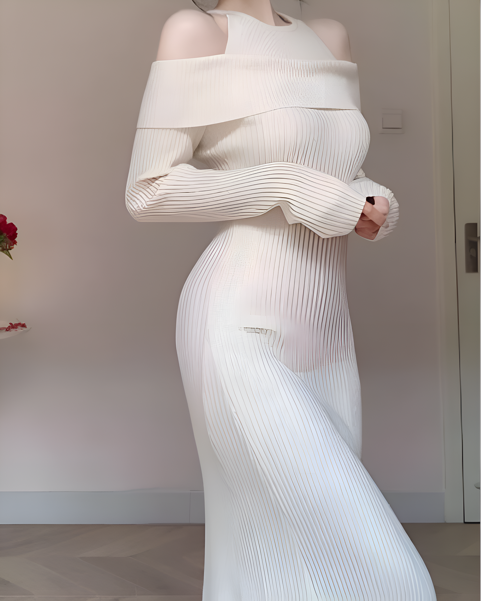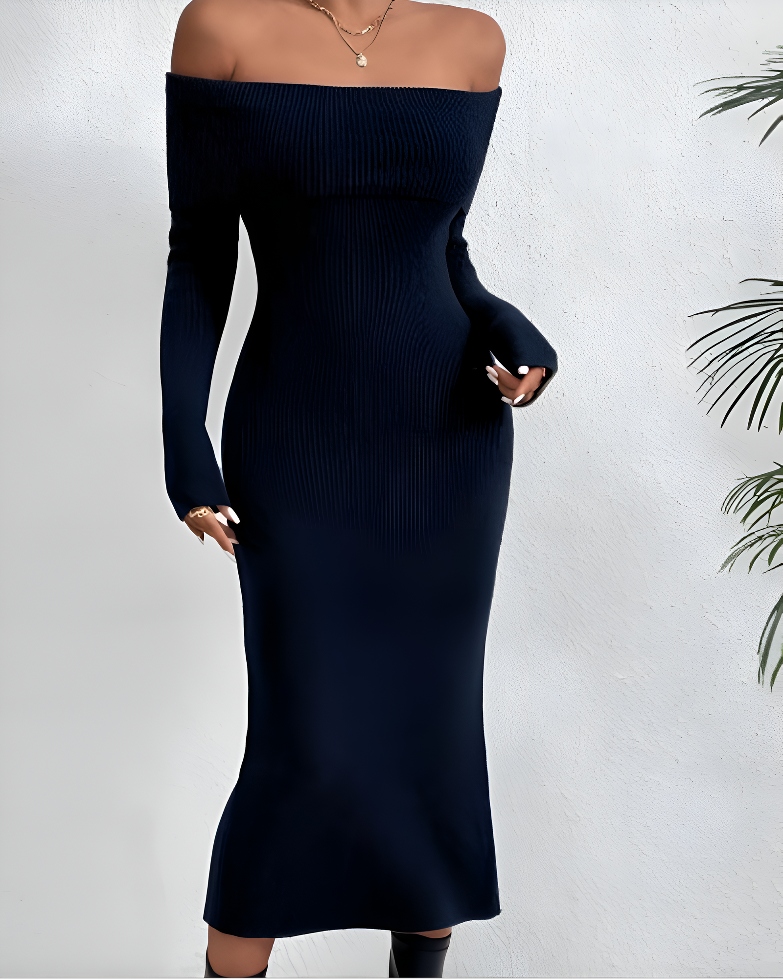 Women’s Off-Shoulder Ribbed Knit Maxi Dress – Elegant & Fitted Look